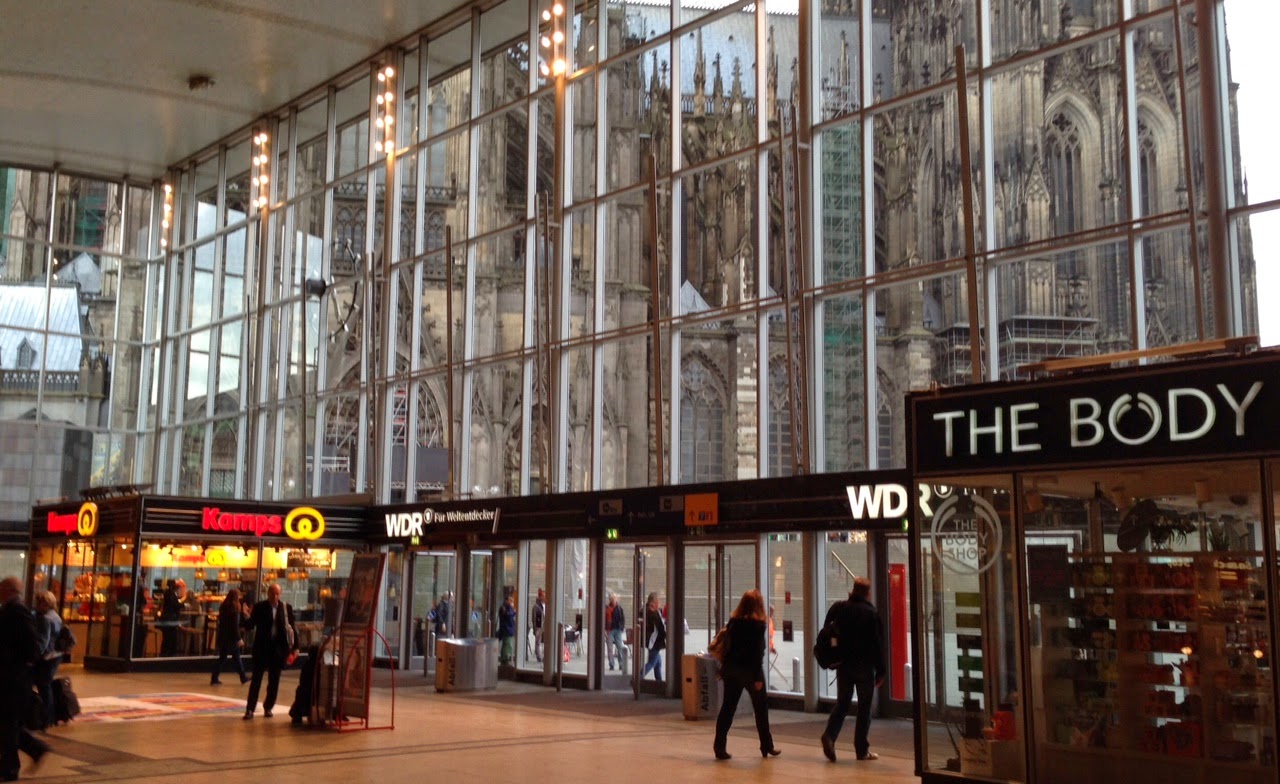 I started my day – where else? – at the train station. The room we’re in doesn’t have coffee in it (despite supposedly being a 4-start hotel) so I was out by about 6:30 in search of. Nothing else is really open that early and I knew stuff at the train station would be. I went to Kamp’s which is one of 2 German bakery chains we’ve identified. Had 2 cups of coffee and a croissant there. I managed to get this shot from inside the station which helps depict the mall aspect that I mentioned yesterday. That’s Kamp’s where I sat and read some of my Churchill book, with The Body Shop on the other side. The Body Shop is somehow ubiquitous here – I must’ve seen 4 of them walking around today, which is certainly more than I see at home. What’s up with that?