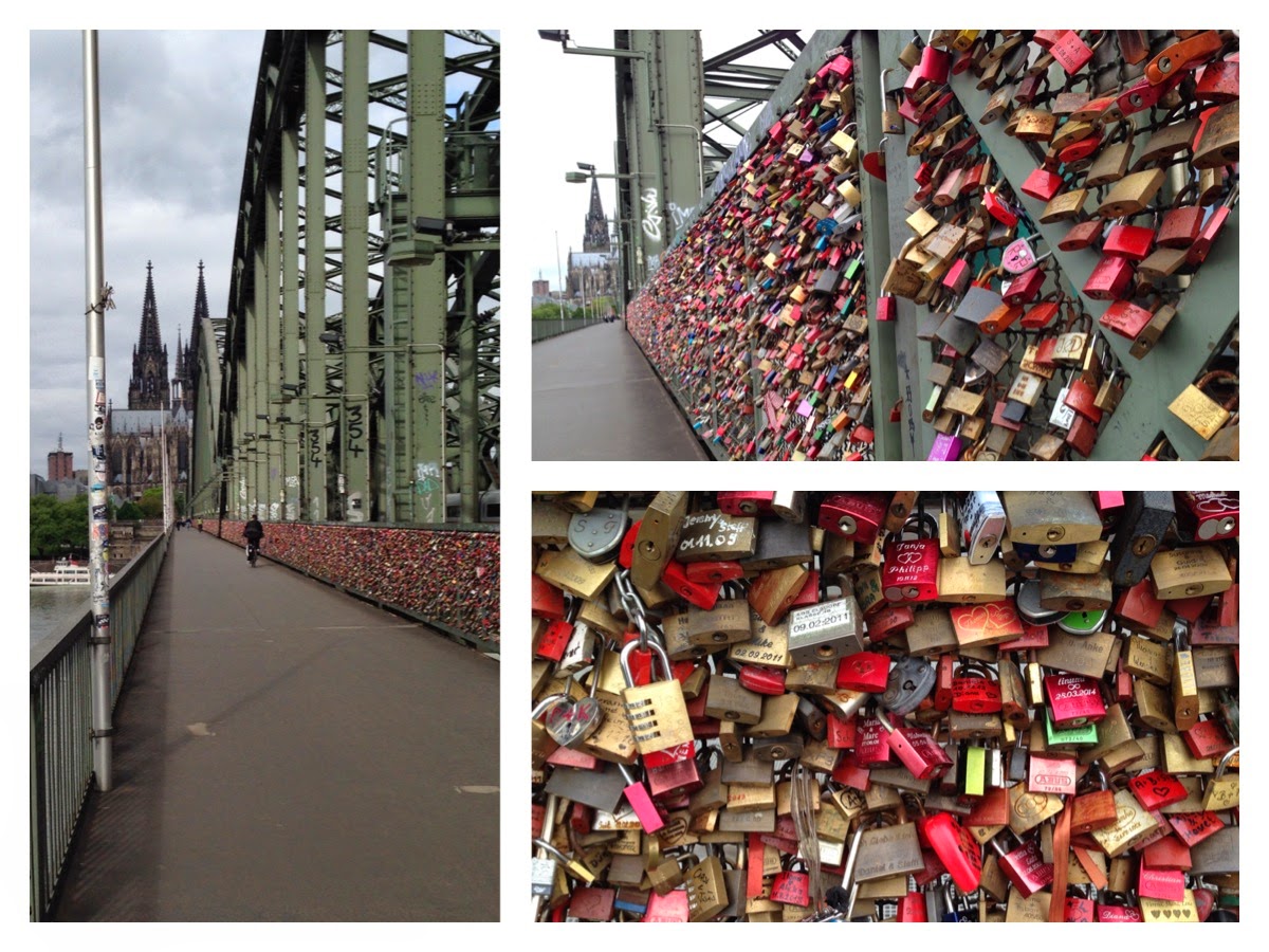 I went back to the room and planned my day using TripAdvisor.com. First stop was the Hohenzollern Bridge. Originally built in 1907 for trains, cars and pedestrians, it was destroyed in WWII and rebuilt in 1946 as a train bridge only. Pedestrians were allowed again some years later. Today it is the busiest train bridge in Germany, serving about 1200 trains a day. The Cologne Train Station is a major transfer point for all European railways. Part of the reason we’re staying here instead of Dusseldorf is the direct line from here to Paris, which we’ll take on Saturday.