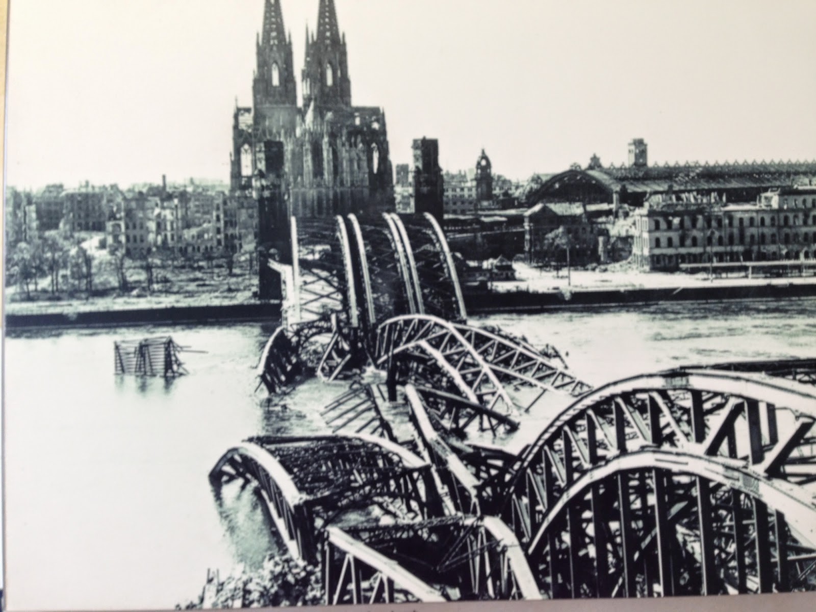 Remember the pictures of the cathedral from the war yesterday? I was able to get a couple of more taking pictures of photos in this museum, including one of the bridge from earlier in today’s blog after the Allies bombed it in March of 1945. It was considered Germany’s link to the west.