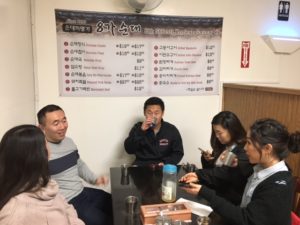 Everyone got together for dinner at Chosun Galbi, a Korean BBQ place in “K-Town” as they call it, Koreatown. I’d been looking forward to this all day. We came here last year when Dan and I were here for Thanksgiving. Great food, and they put us in the same semi-private room we were in last year. From left to right: Judith, Emily (Irene and Alvin’s younger sister who didn’t join us today), me, Paul, the oldest brother, his wife Tammy, Dan’s Mom and Dad, Jacob, brother #2, Alvin, Dan, Irene (who suddenly got flu-ish on the way to the restaurant, yikes!) and Janelle.