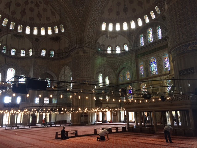 First stop was Sultanahmet Camii, better known as the Blue Mosque. Built between 1609-1616, it has one main dome, six minarets, and eight secondary domes. It incorporates some Byzantine Christian elements of the neighboring Hagia Sophia with traditional Islamic architecture and is considered to be the last great mosque of the classical period.