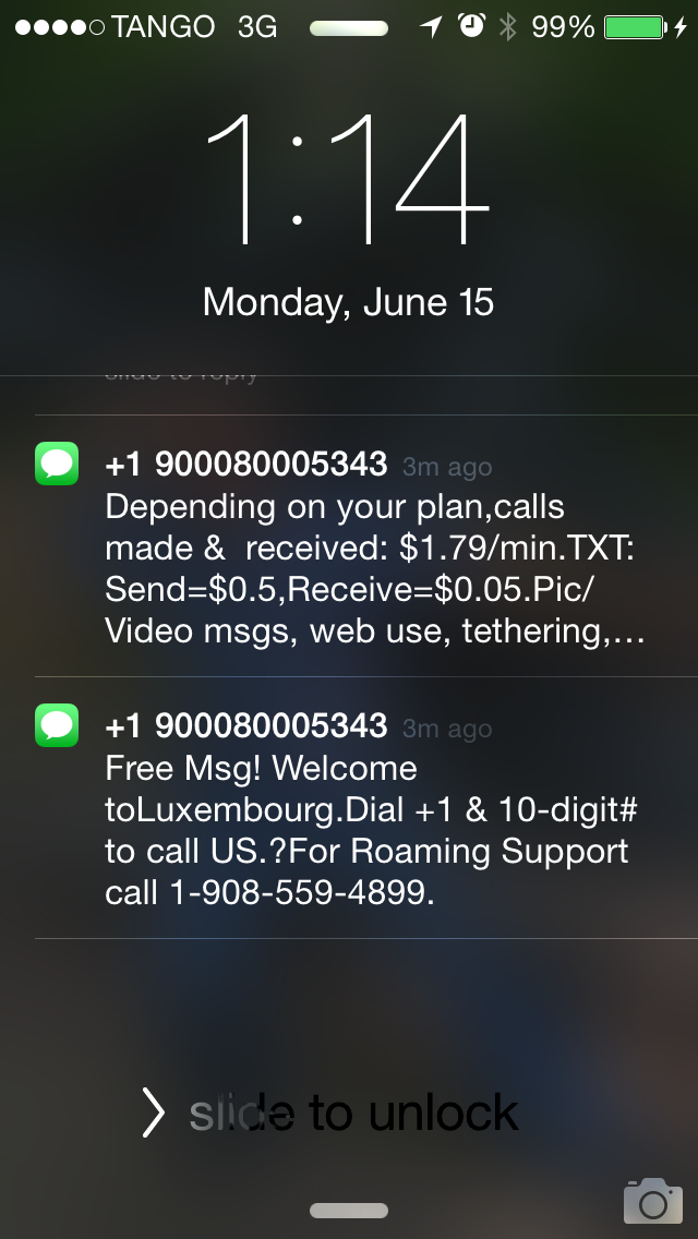 When you cross borders it automatically changes to the provider in that country Verizon has the deal with and you get text messages. These came in while I was on the train.