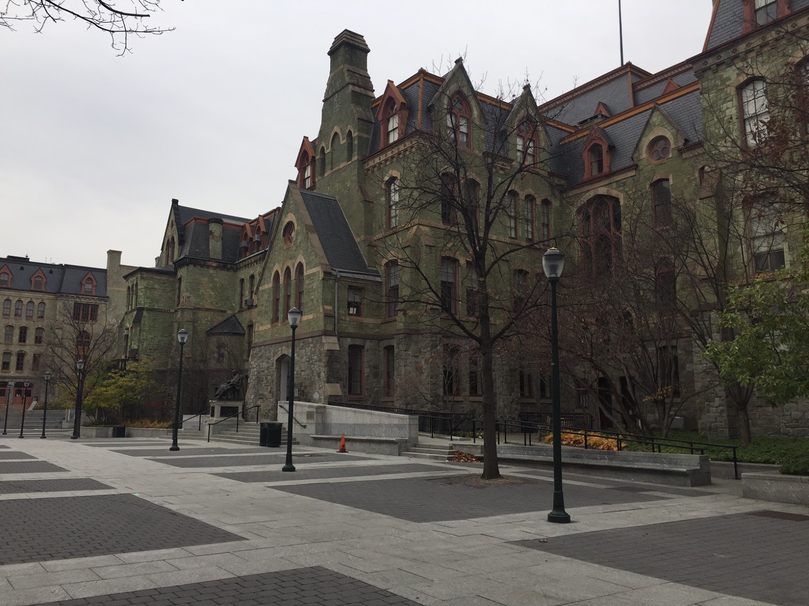 Next we went to the University of Pennsylvania. Dan went to school there for 5 years (double degree in biology and computer science), leaving in 1992 and he hasn’t been back to Philadelphia since. We spent a couple of hours walking around a beautiful and very large campus that has bits of town woven through it, as he pointed out the various places he lived (he moved every year), where some of his classes were, open fields that are no longer where he played football, and the labs he slaved in. None of it was open so we could only see things from the outside; there were still quite a few people milling about, a tribute probably to the park-like nature of much of it.