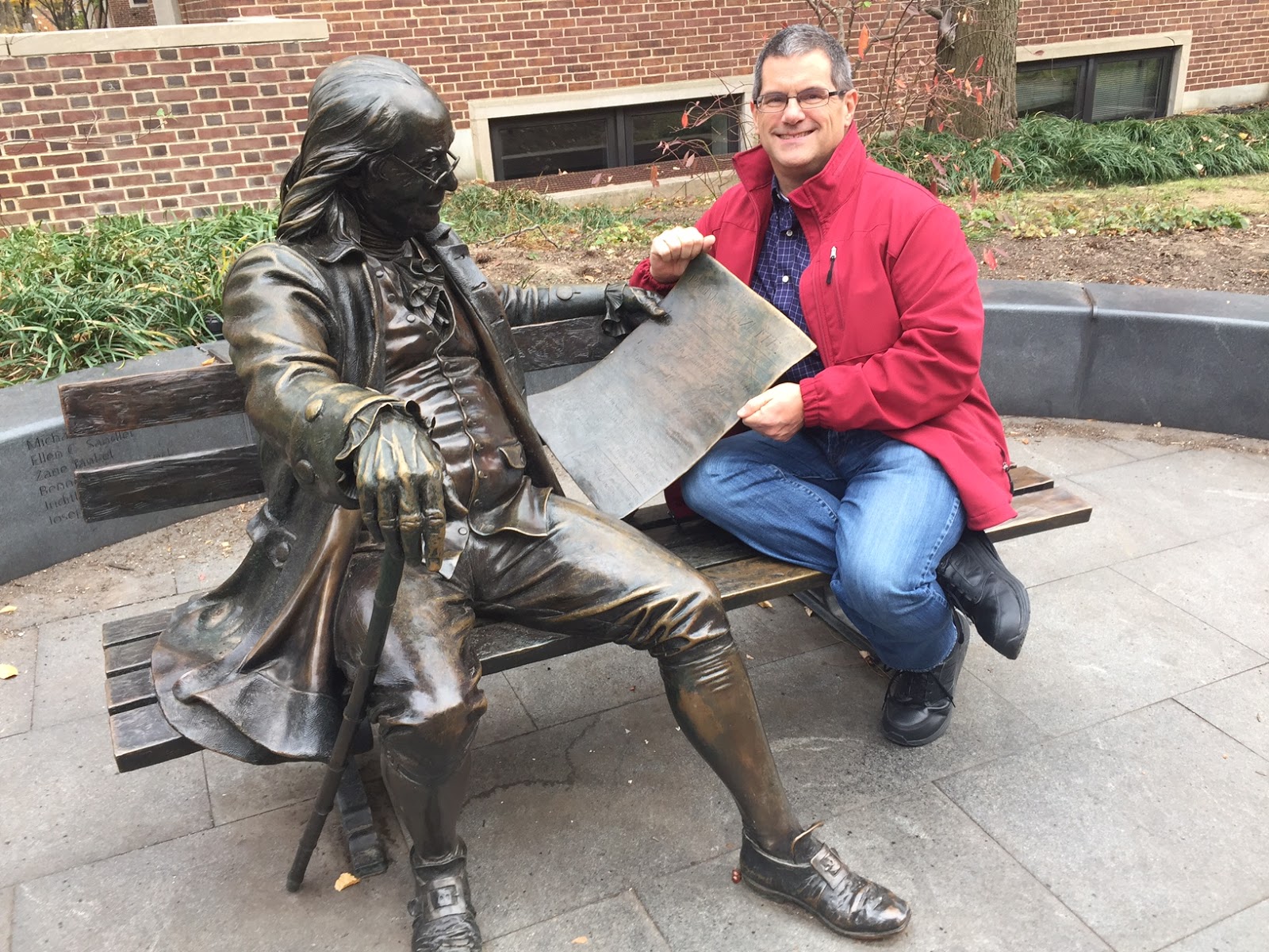 Penn was founded by Ben Franklin in the mid 1700’s. This statue is in the middle of a walk that has many of sayings inscribed in it.