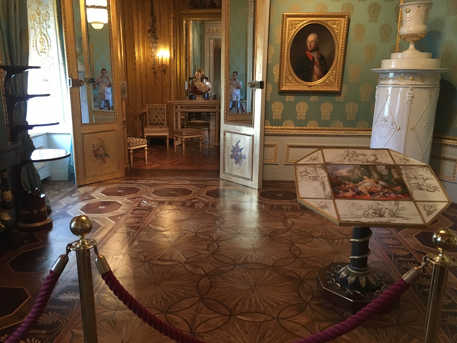 This was the study of Emperor Franz Stephan and Empress Maria Theresa. They had 16 children, several of them famous, including Emperor Joseph II (in the painting above), and of course Marie Antoinette. This table was a gift from her to them.