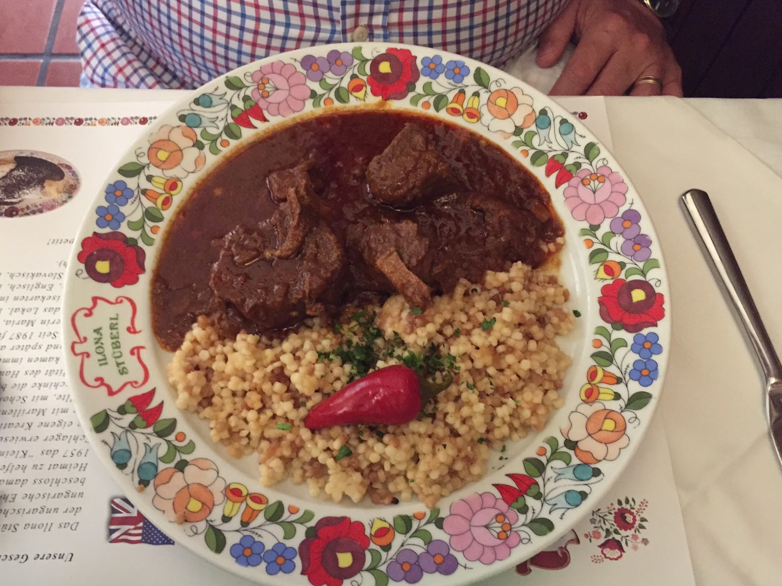 I had beef goulash with Hungarian pasta, which was more like couscous. We both agreed this was the better dish.