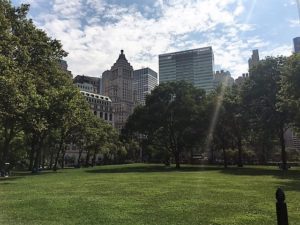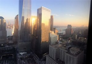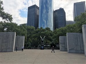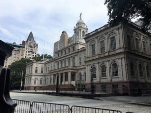 We stopped by Oculus to add the fare to our Metro cards that we would need for the airport so we wouldn’t have to mess with it later, and met the Walking Tour right at 10am. Yesterday we kept joking about how we’d been in City Hall Park several times, somehow never actually saw City Hall. Today we finally did. It’s the oldest in the US, completed in 1812. It has a very classic design that we’ve seen in Liberty Hall in Philadelphia, as well as lots of buildings in Europe.