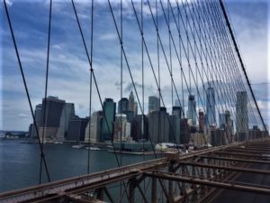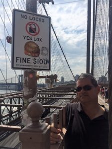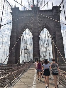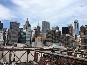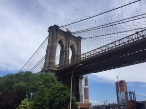 The tour we picked was to cover the Brooklyn Bridge, Brooklyn Heights, and DUMBO, or Down Under the Manhattan Bridge Overpass, an area popular with artists and high tech company’s along the river between the two bridges. We ended up bailing on the tour early, just as he was headed in to Dumbo, because we wanted to make sure we had plenty of time to get to the airport. But we liked what we saw. Neither of us had been to Brooklyn before and while we only saw a tiny part of it, we enjoyed it. And of course had never walked the bridge, so that was fun for sure.