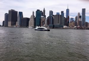 It was literally a 5 minute ferry ride to the pier at Wall Street. We found a noodle place to stop for a quick lunch and got back to the hotel around 1:40. We wanted to leave no later than 2:30pm and were able to get out by 2pm. And a good thing. There were delays due to modified subway routes and then Dan got stopped at security for a baggage search and that took forever.