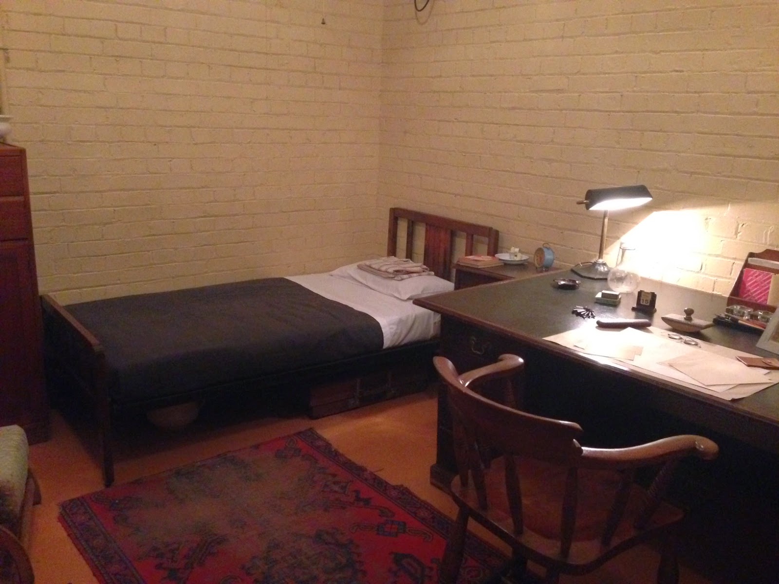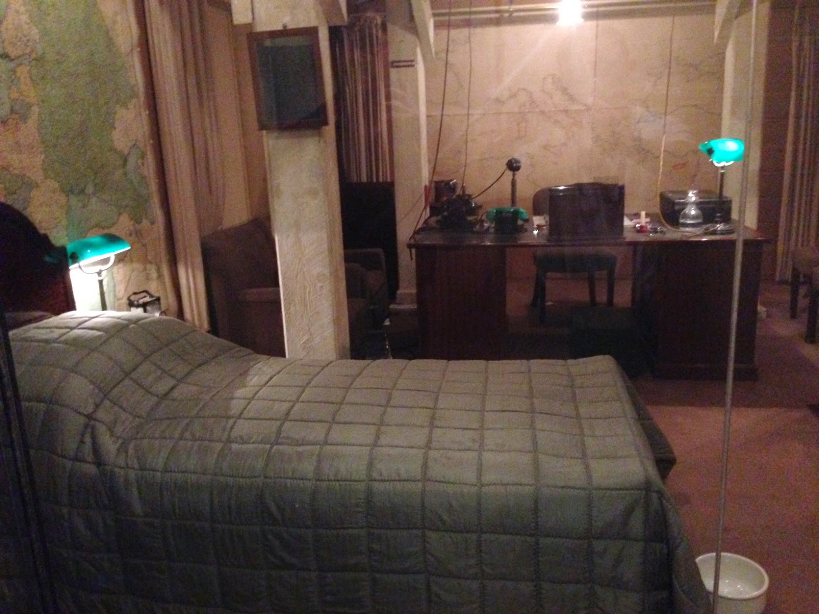 | Churchill’s bedroom. He also had a separate office there as Prime Minister. This room is next door to the map room. Notice the maps on the walls. |