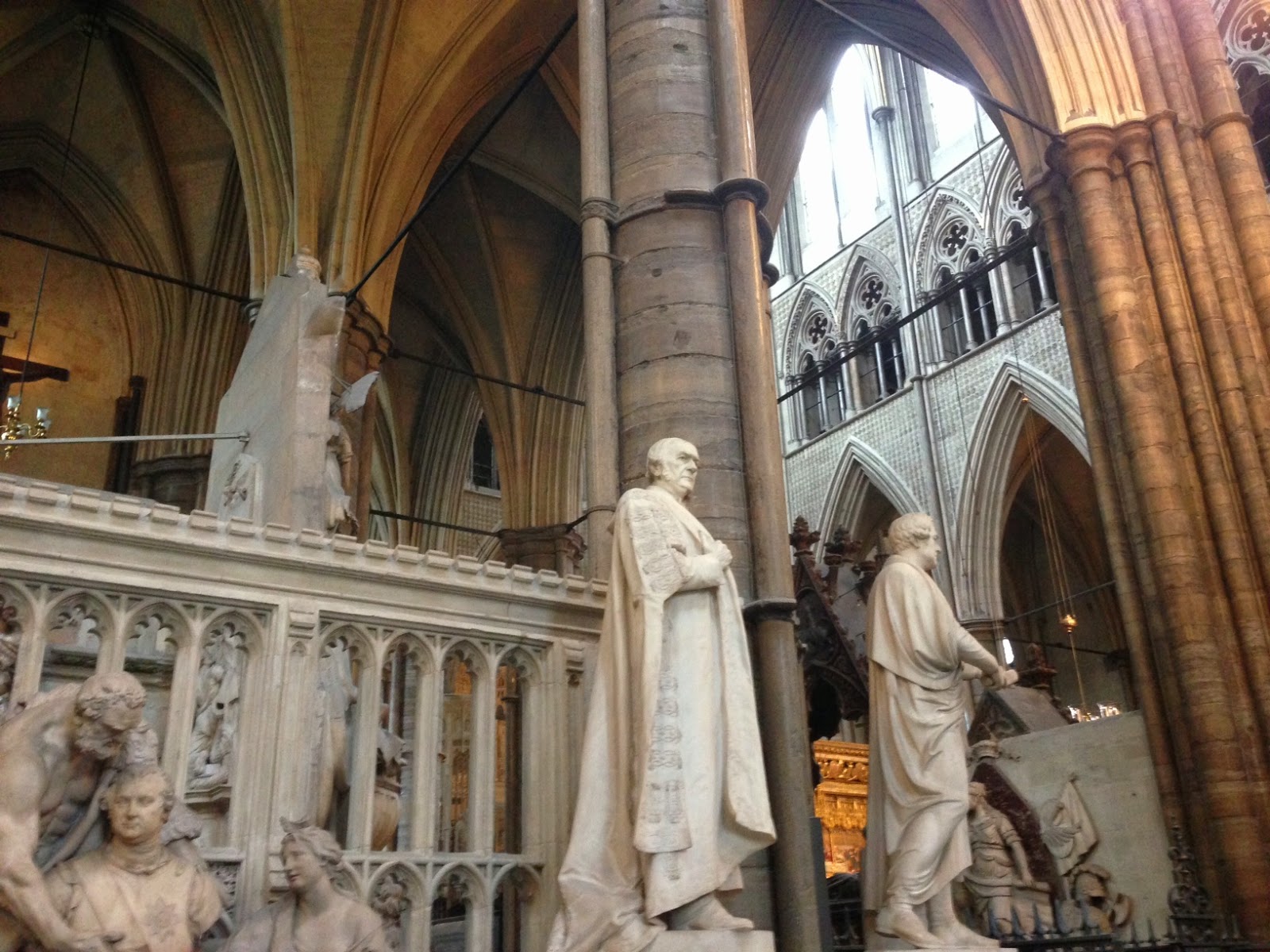 We’d made our way back around to Westminster Abbey by 3pm. As I said in an earlier entry – around our nonplussed reaction to Notre Dame – we’ve seen a lot of European churches and it takes a lot to impress us. This might go to the top of the list. It’s old – much of it around 800 years – beautiful, architecturally interesting, and steeped in more history than any we’ve seen. It’s still a functioning church with regular services, and the site for many royal ceremonies, including the funeral of Princess Diana and the recent-ish wedding of William and Kate. And lots and lots of famous people are buried here, I really had no idea. Lots of names anyone would recognize (Charles Darwin, Isaac Newton, Lord Byron, Alfred Lord Tennyson), many you wouldn’t, and of course lots of royalty. Elaborate tombs of famous royals were the most interesting, including rivals Elizabeth I and Mary Queen of Scots. You can see the full list here.
