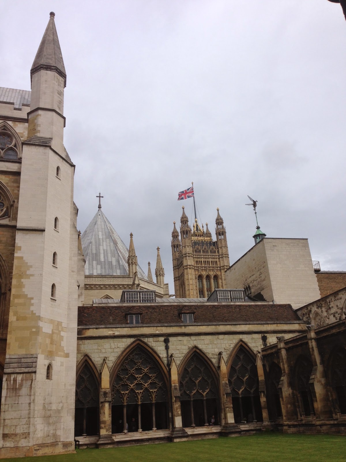 | Side view of Westminster Abbey. We couldn’t get in this morning because it was closed to the public until 12:30. This apparently happens when there are special services going on. |