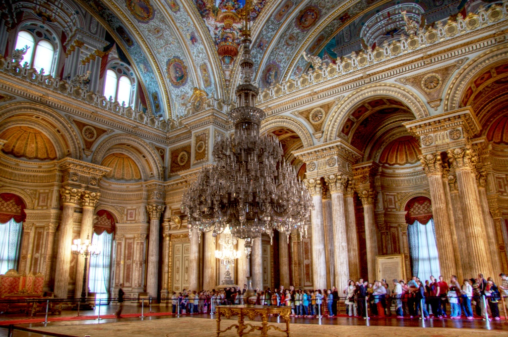 I stole a couple of images off the internet that I thought showed several of the rooms well. Above: the grand staircase shortly after you entered. Those columns are not marble but wood painted to look like that. This palace is built on landfill and they were trying to keep the weight down. Below: one of the salons, or halls. A unique thing about the palace design is it is completely Western – particularly Baroque and Rococo – style in a traditional Turkish layout, with great halls around which are many rooms. Western palaces have thinner corridors with the rooms off of them. It’s mixture of East and West symbolizes much of Istanbul’s attitude about who she is.