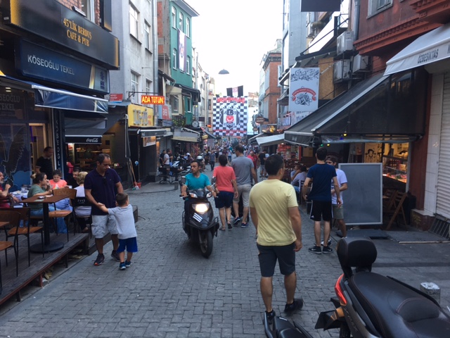 Turkey has 2 soccer teams, one of them is named after this neighborhood. Their colors are black and white and I guess they just won something big? Anyway there were flags everywhere. Note the middle of the street below.