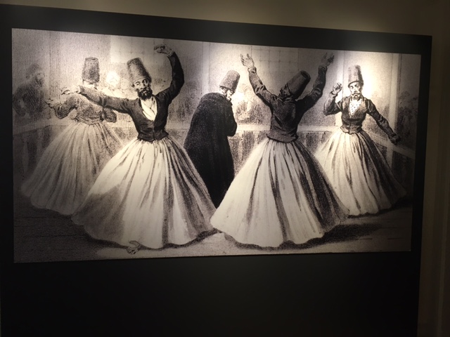 Where this street ends, the Galata area picks up. The only other thing on our list to go in was the Galata Mevlevi Museum. And odd little side trip, but on the museum pass. It focuses on the history of the Mevlevi order of Sufi-ism, which, in addition to being the order Rumi was in, is famous for whirling dervishes. Yes, they are an actual thing, not just a Sound of Music reference. You can still catch a performance of them here on Sunday nights, and several other places around town, but you have to book early which we of course didn’t. So I took a few photos of photos instead. I learned before we got here that it’s not so much a dance as a religious ritual. I came here hoping to find the meaning behind it but left still with that question in mind unfortunately. Later I found a reference indicating it’s commonly believed to be a re-enactment of birth and resurrection. But this order has been whirling since the 1300’s.