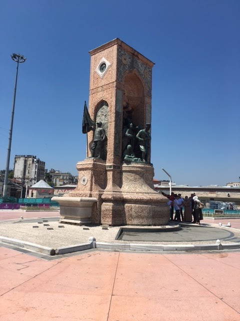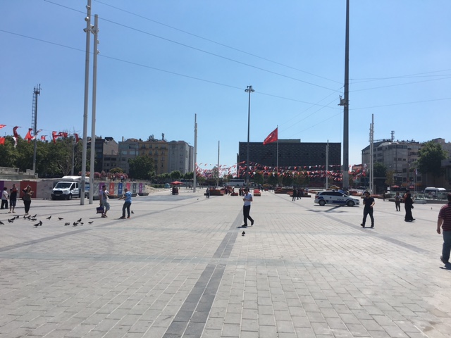 We walked first to Taksim Square, a gathering place where large festivals occur and protests have been held, including a recent youth based protest in 2013 that’s referred to as the Tiananmen Square of Istanbul – estimate more than 3million people participated. This is Taksim above and below. [And by the way, complete non-sequiter: there’s no “x” in the Turkish alphabet, so when you need to get somewhere you hire a taksi….]