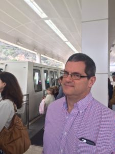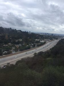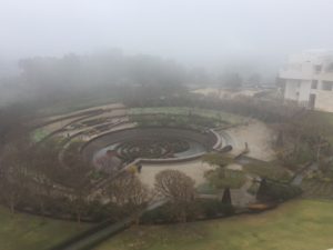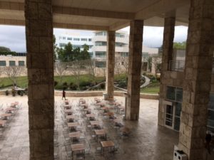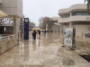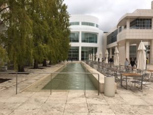 The Getty Center sits in the hills just north of Sunset Blvd on the west side of the 405. (Uh oh – you know I’m in SoCal when “the” is in front of the freeway name…) It’s nestled in the hills and, while you can walk up to it from the parking structure, we chose the tram instead. My legs have been killing me from the running I’ve been doing in the hotel gym in the morning before breakfast.