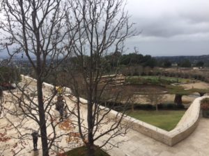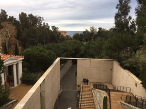 Getty died in 1976. His trust kept collecting things. It’s also very involved in conservation and, partnering with UCLA, offers the only masters program on the subject in the country, with all of the labs and equipment to go with it. The collection outgrew the existing museum, and a new complex with built further inland in the mountains. This became The Getty Center, and opened in 1997. At the same time, the earlier museum closed for renovation and reopened in 2006 as The Getty Villa. Today is houses the antiquities collection, and everything else, along with the research institute, is in the Getty Center complex. We did both today. And were fascinated by the fact that both are free. It’s gotta be a heckuva endowment. We paid $15 for parking at the Center, and got a coupon which waived the parking fee at the Villa when you do both on the same day. Pretty good deal.