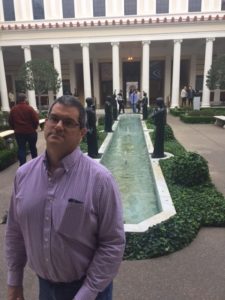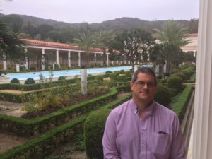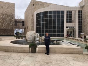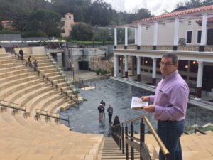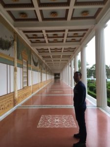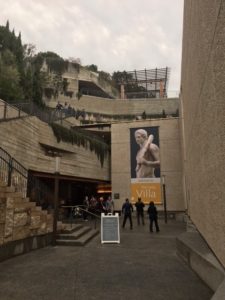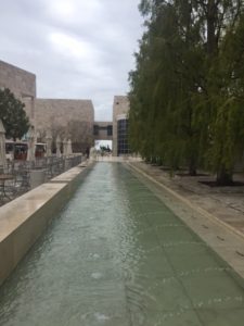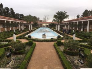 So what I’m calling “The Getty” is really 2 museums, funded by the same foundation, and very closely related. J Paul Getty (the oil tycoon if you don’t know the name) owned a mansion in Malibu. He had a passion for art collecting, especially antiquities. Initially he just had his collection in his home, which in 1954 he opened up to the public a few days a week because he wanted to share it. But his collection was too big to be enjoyed from just a few rooms in his house. In 1968, on the same property he has a villa constructed as a recreation of the Villa dei Papiri, a Roman country house discovered in the late 1800’s which had been destroyed by the Pompeii earthquake in 79. (Just plain old 79…like 0079.) This opened in 1974 as the J Paul Getty Museum.