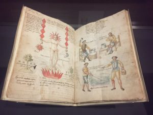 They had a special exhibit on alchemy which we made our way to next, killing a bit of time before the lunch reservations we made for 12:15. The guy below was the first exhibit, representing the Roman god Mercury.