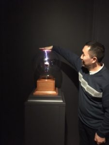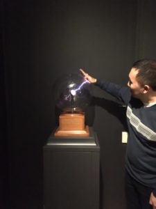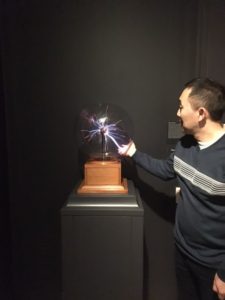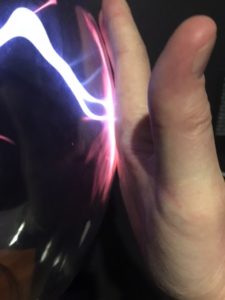 This is a plasma globe. Plasma is the 4th state of matter (after solid, gas, liquid) discovered in 1879, and which scientists now believe is the most abundant type of matter in the universe.