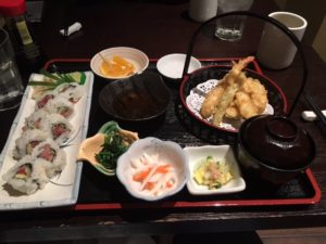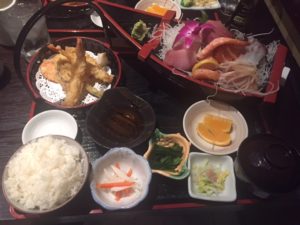 Mine above, Dan’s below: the only difference is I got spicy tuna roll, Dan had a nice variety of sashimi.