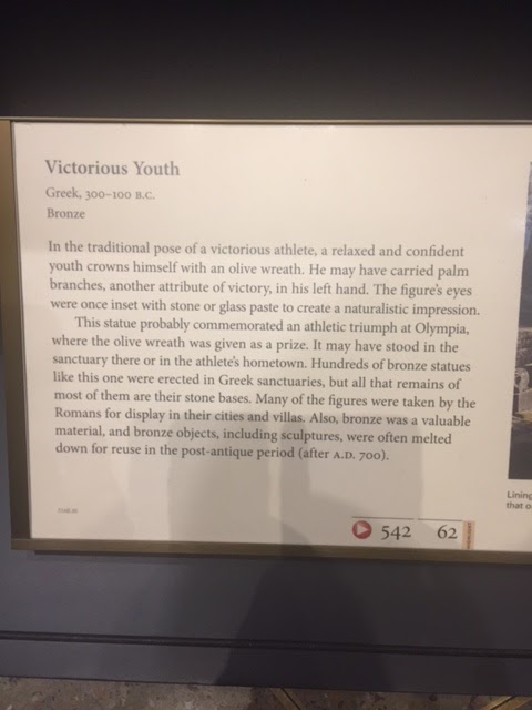 This was a small, ancient copy of a 40 foot enthroned Zeus. For some reason in this museum, I really “got” that the ancient really believed all those gods existed, were real people up on Mt Olympus, and why there was so much art about them.