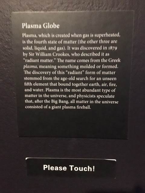 This is a plasma globe. Plasma is the 4th state of matter (after solid, gas, liquid) discovered in 1879, and which scientists now believe is the most abundant type of matter in the universe.