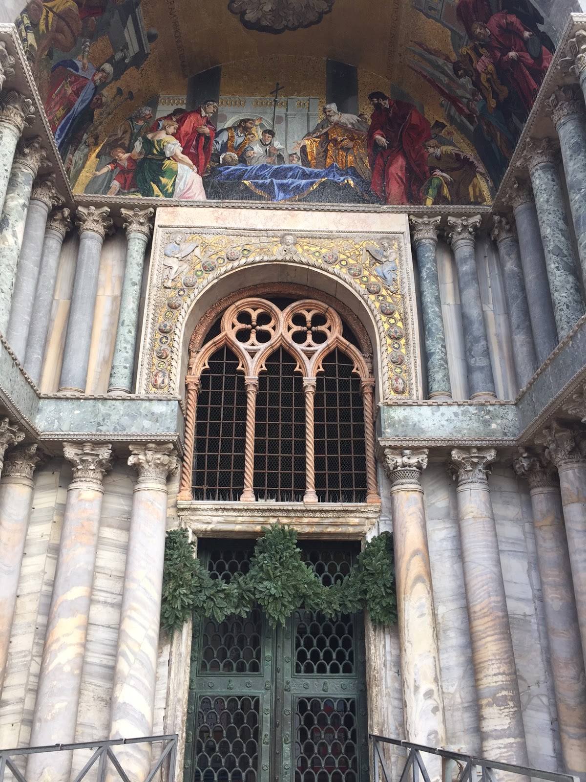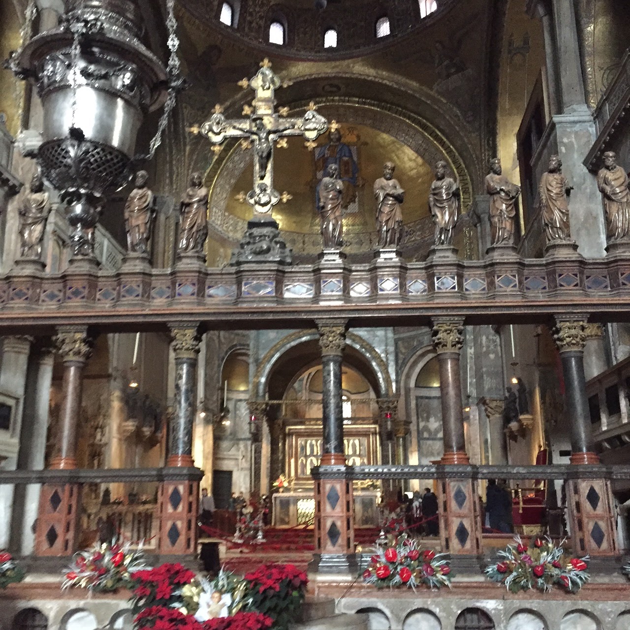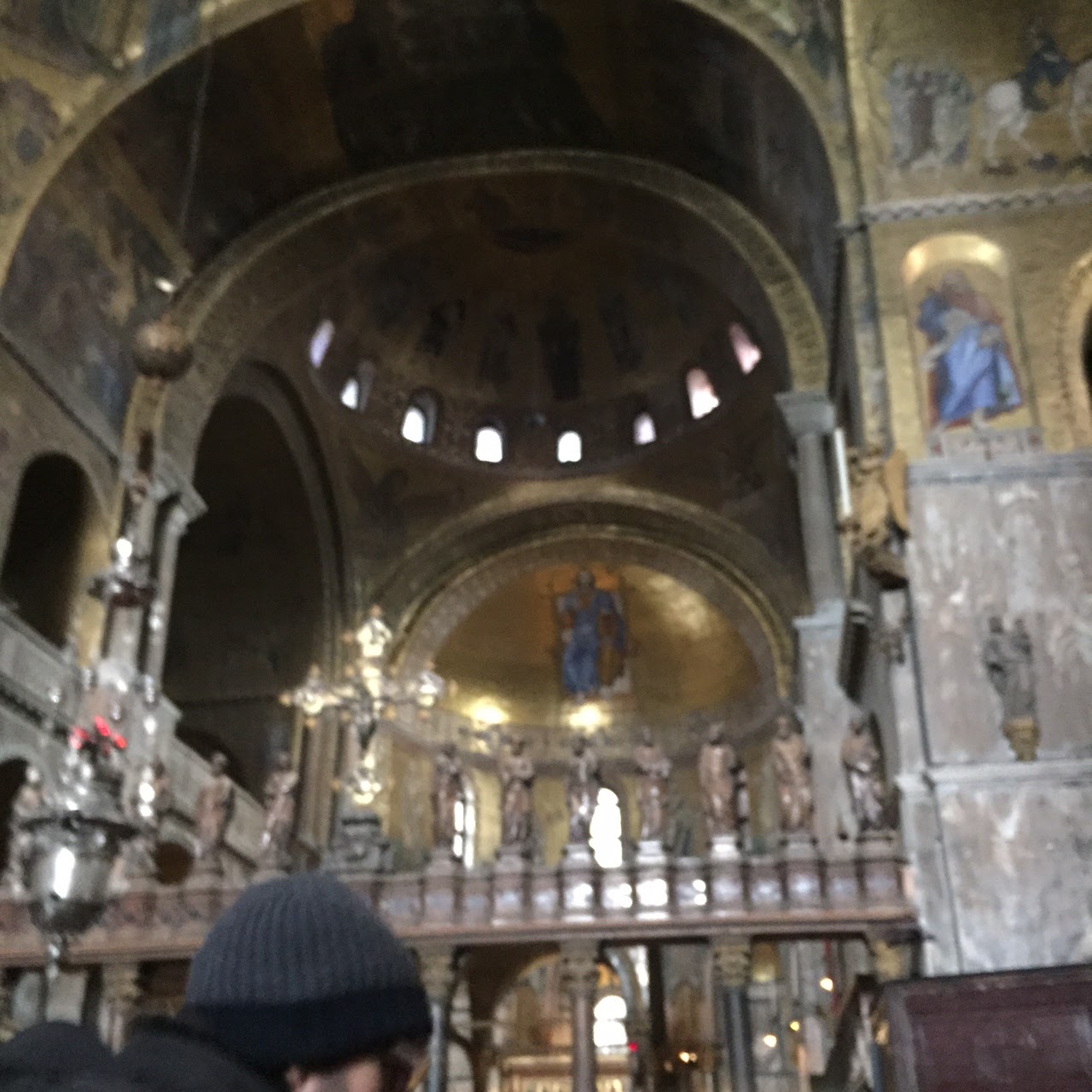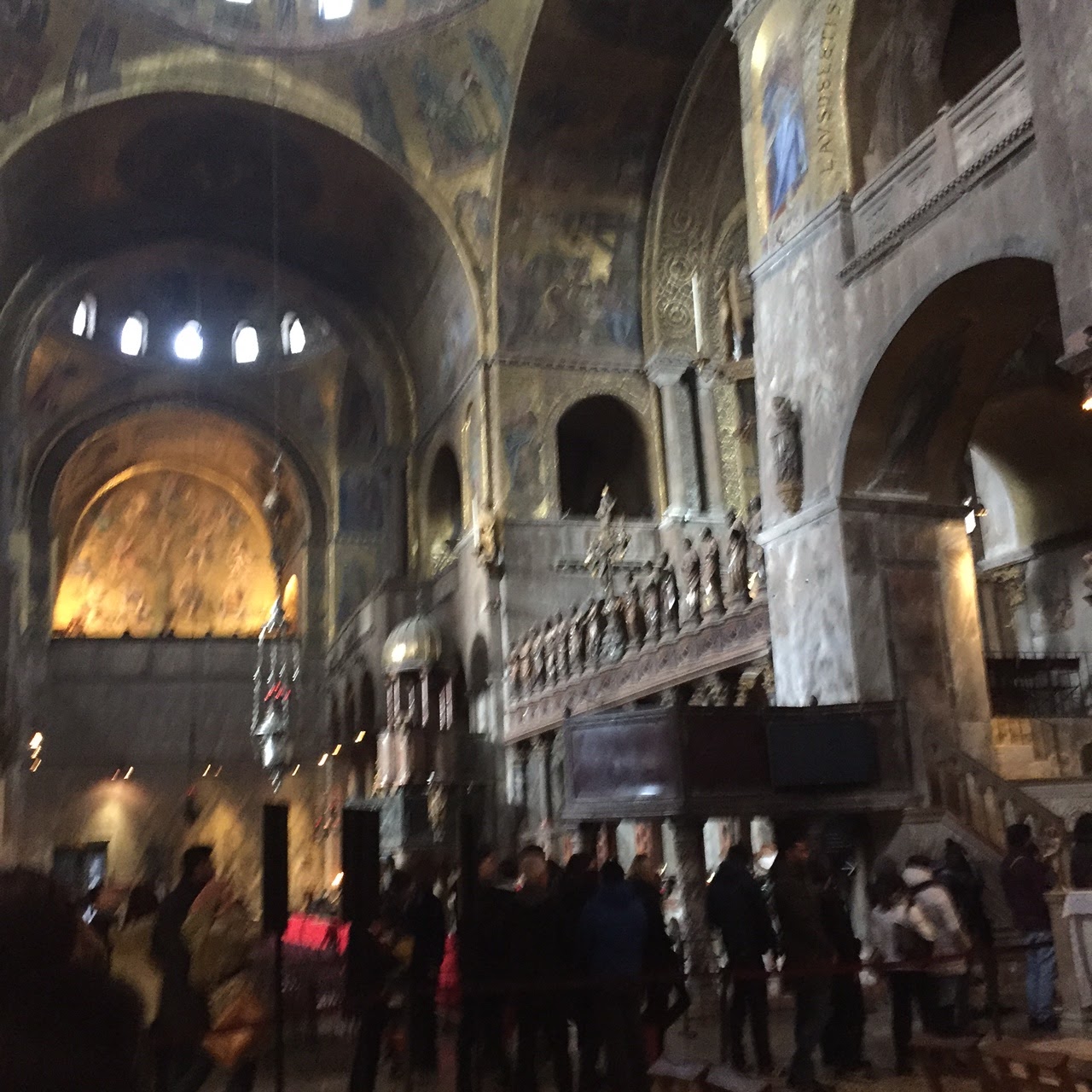 St. Mark’s was next. Admission was free, and they kept the line moving so even though it was long it went fast. We figured from the way it looked that it’s older than Cologne; turns out it’s older than Notre Dame even, built 1084-1092. Style is Italo-Byzantine.