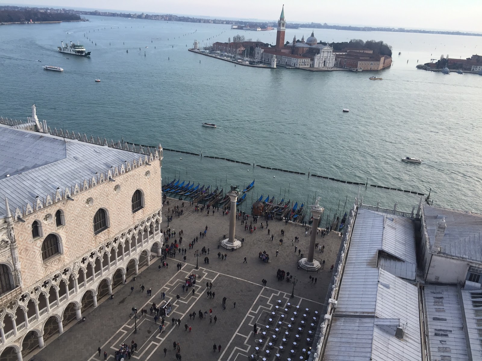 Next was the bell tower, or Campanile. It’s 323 feet high. Original design from the 1514, but this version was constructed in 1912 after it collapsed in 1902. We did it solely for the views. And were disappointed that it was an elevator and not stairs!