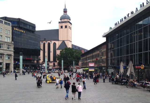 Sure enough, the massage place was just a couple of blocks away. The sign on the door confirmed it didn’t open until 11am, so I look a right and spent the next hour playing “let’s turn here and see what happens.” That’s one of my favorite things to do when I’m traveling – just meander and try to get a feel for local life. You have to get far enough away from the tourist area, and/or one or two blocks off the main drag. Since we tie these annual trips to Dan’s work, Cologne is the likely starting place each time, so I wanted to get to know the neighborhoods better. I found myself back at Neumarkt where we had been Sunday evening, but approached it from a completely different direction and was happy I recognized as I came up to it. I stopped at a bank in that area, then went and found some new paths to work my way back to hotel.