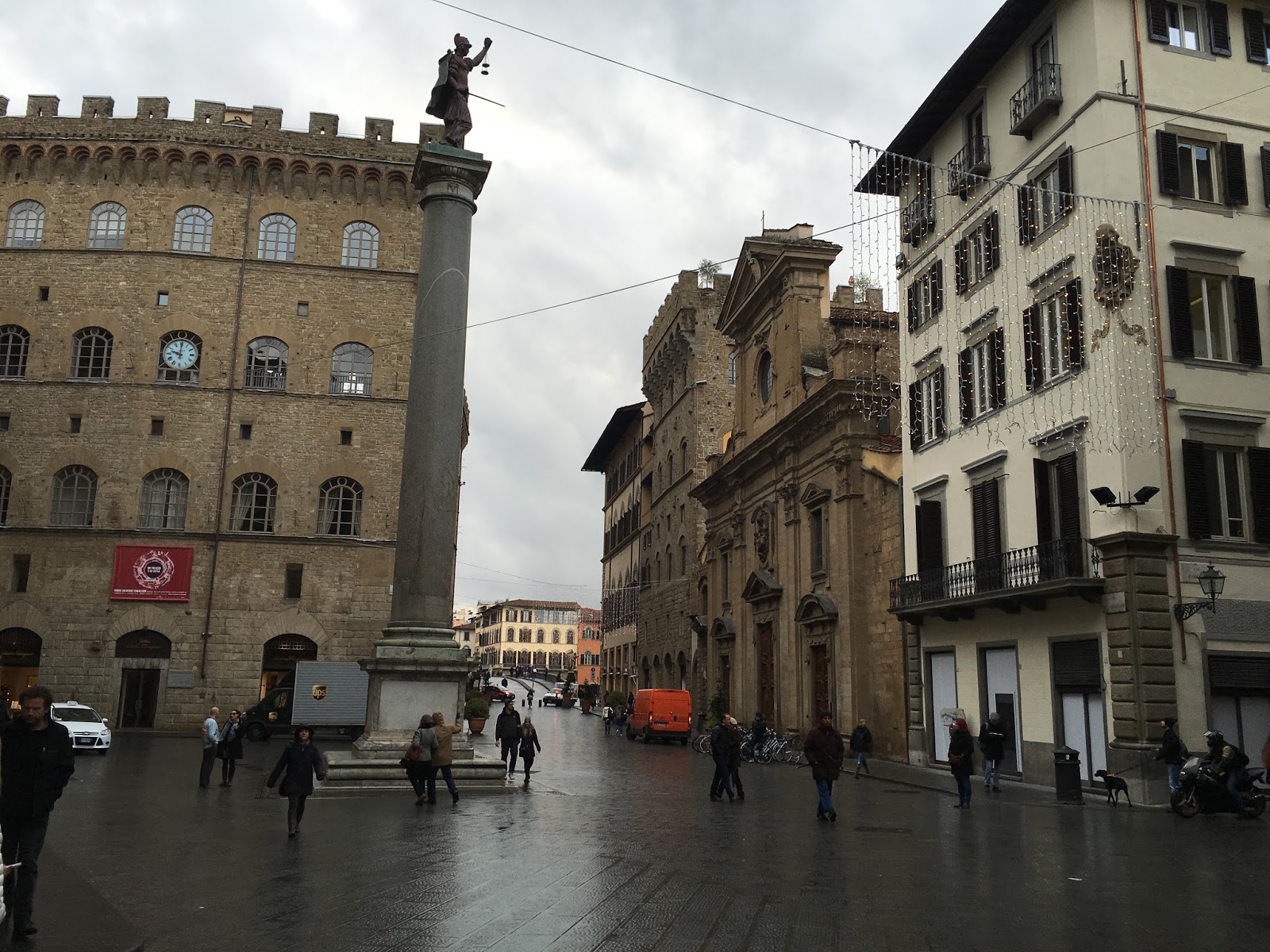So this was our goal: Piazza della Signoria. A big plaza that has all the masterpiece sculptures bordering it. Pretty amazing. There’s a balcony that has more on it but it was closed for the day already, although free to the public.