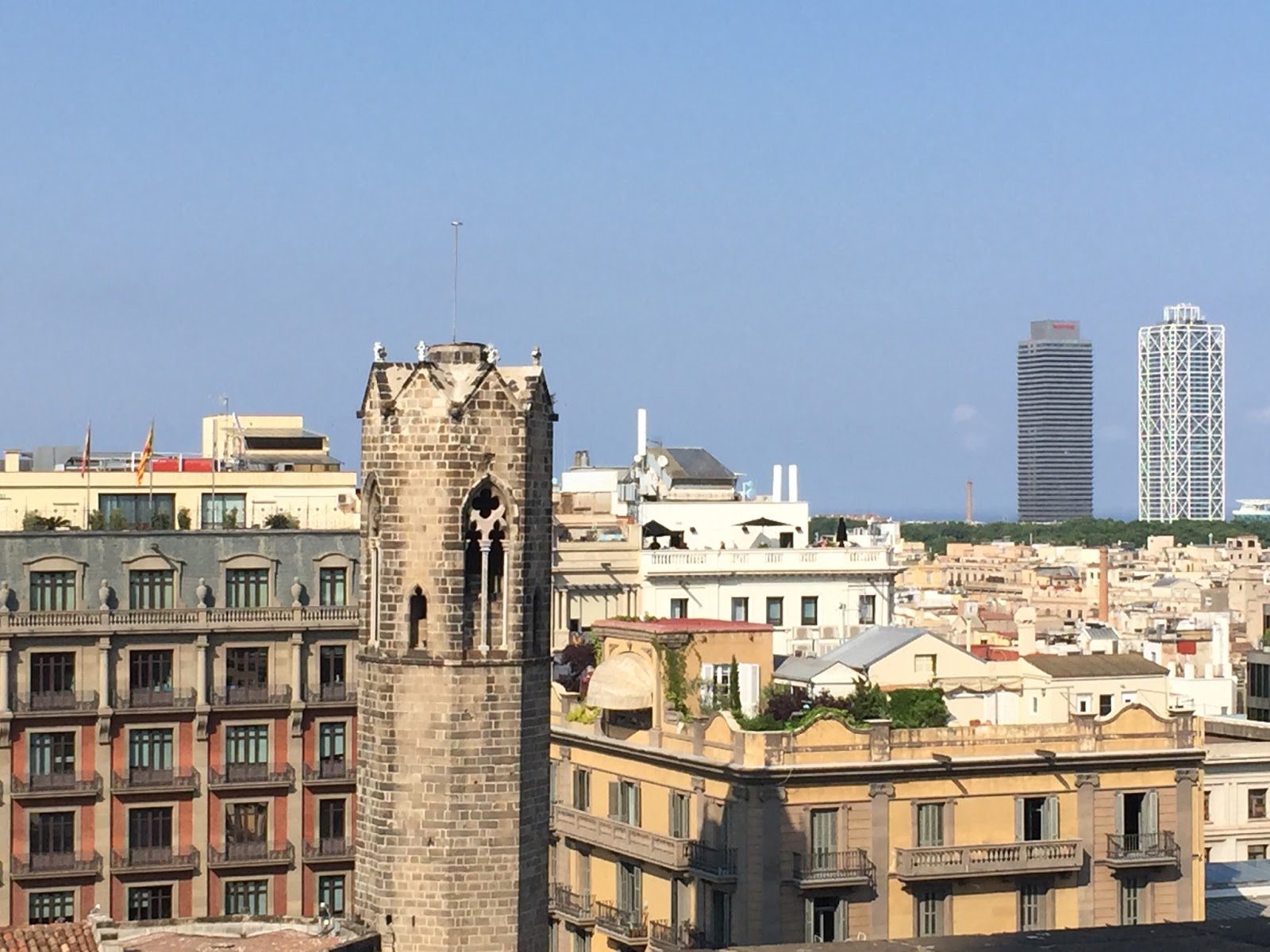 That’s La Sagrada Familia to the right, the most famous work by the architect Gaudi. We’ll be going there on Sunday.