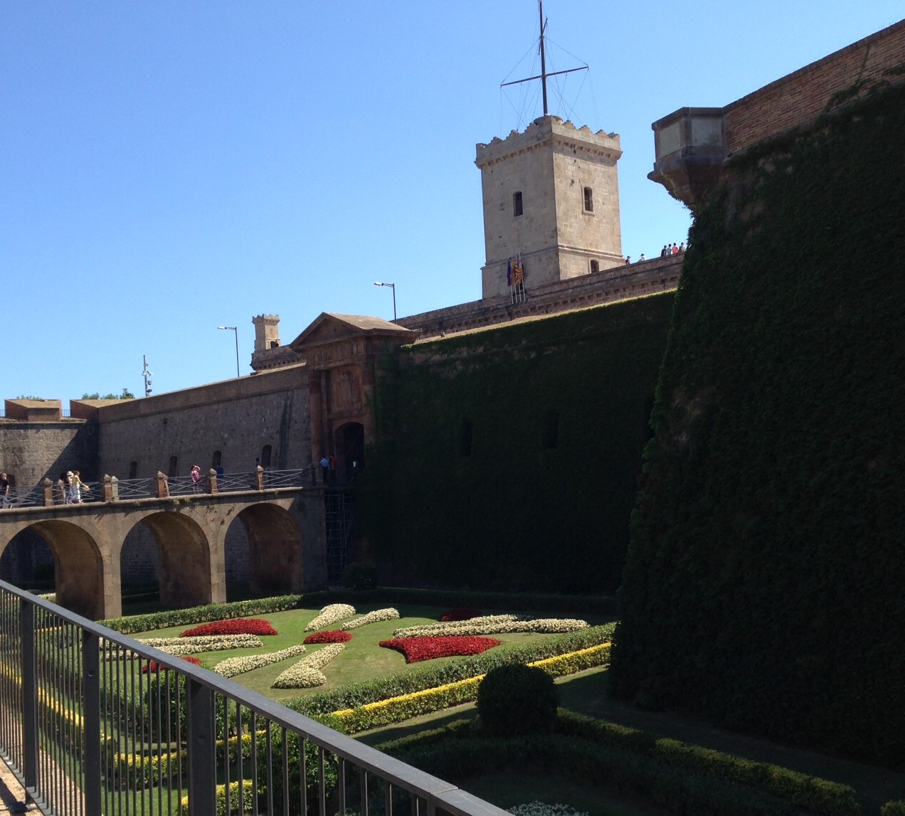 Next we took a “funicular” ride (think gondola) up the Castle Montjuic. Here are some photos on the way up.