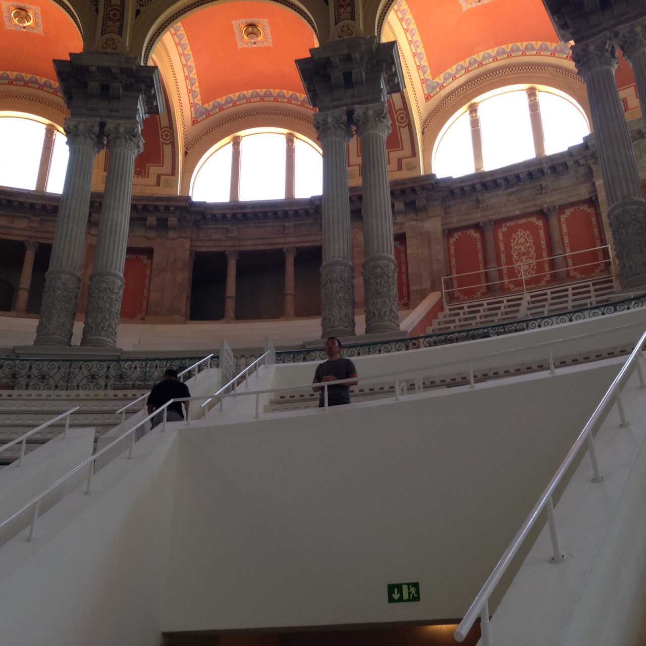 We had a simple breakfast in the apartment, including yogurt, ham and soft-boiled eggs, and headed out a little after 10am. We caught the metro (subway) just outside our apartment and took that for several stops, then walked a bit through a nice neighborhood. As we were approaching our first stop, the National Museum of Art, I was focused on this statue in the middle of his intersection (which I deleted the picture of because I couldn’t get a good shot), and when I looked up I gasped. Dan was like “I was wondering when you were going to notice.”