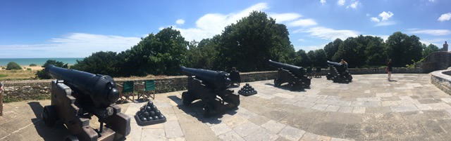It was difficult to get good photos of this castle because it was so compact, so I got the photo below from the internet. There was an outer wall and a moat and the design was somewhat a flower. The outer petals were all for defense, from above and below. If you look carefully you can see little windows where soldiers could shoot from. Cannons are still on display above. The inner petals were both defense and living quarters. Anne of Cleves, Henry VIII’s fourth and favorite wife, stayed here on her way over from Calais on her way to meet Henry to marry him. That was 1539 and it was barely completed, having gone up in just 9 months.
