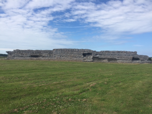 We were only here about 40 minutes. The next stop was about a 20 minute drive away, the Richborough Roman Fort. This is the Roman ruins from a period that started in 43 when the Romans first invaded these islands, and lasted through about the 400’s, abandoned after the fall of the Roman Empire. It was an extensive fort and some civilian settlements in the surrounding area. It claimed to have an amphitheater that hadn’t yet been excavated but whose outline could be seen from ground level; we attempted to find that but it remained elusive.