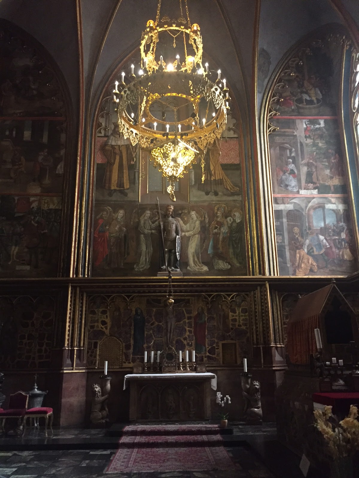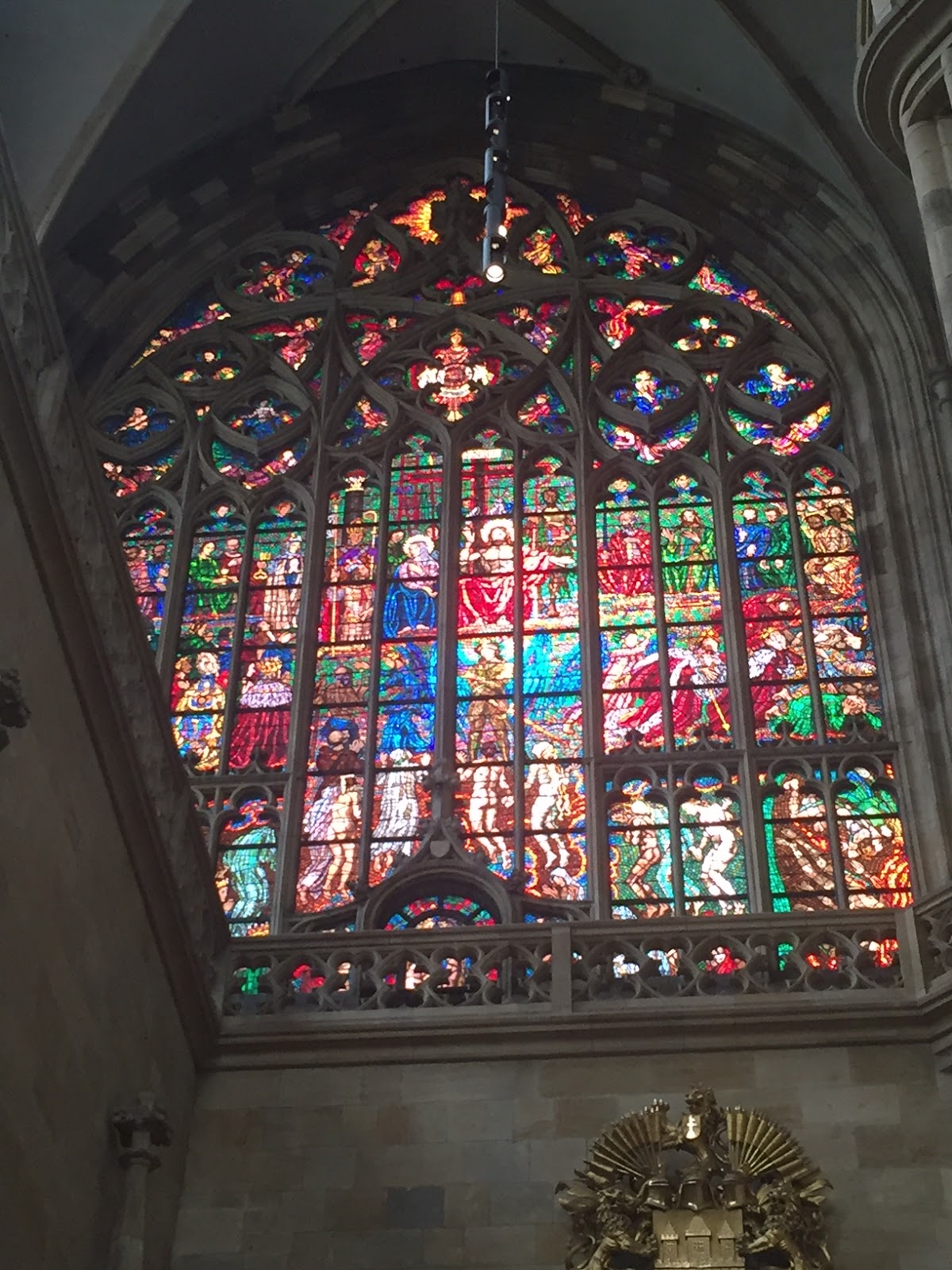 This was in the Castle, Diet Hall it was called. It was the meeting place for the King at the time (or Queen if you’re Maria Theresa) and the other folks in his circle who made decisions for the town. There was a lot of history in this first section of our tour, and it was interesting to see how well this trip tied history together: so many connections between Vienna, Bratislava and Prague. The Habsburgs used this castle as the seat of their empire for a short period of time in the 1600’s. Maria Theresa and other Austrian monarchs also held the Bohemia crown as well as Austria and Hungary. Not shown here, there was a big painting of her on the left. But for the better part of 900 years, this was considered the seat of power for the Kingdom of Bohemia. The name of the first Bohemian king, year 1086? Vratislav. I had seen that reference in Bratislava, too, only there it was spelled Bretislav. But now we know where that name comes from.