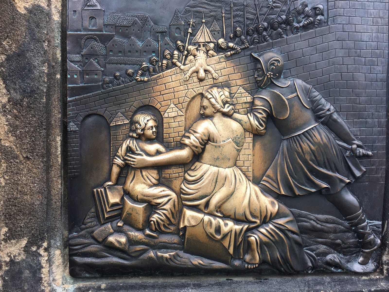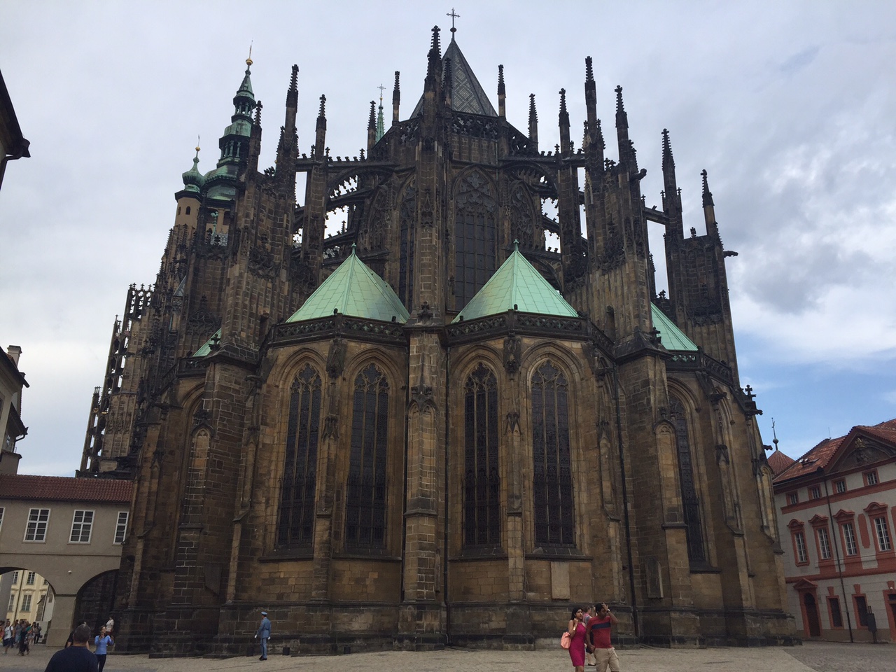The entrance to the Charles Bridge. It is the oldest bridge in the city. Construction began in 1357 and it was finished in 1402. It is famous for having 30 or so statues situated on it. (Don’t worry, we only took photos of a few!) It gets compared to a bridge in Paris that is also rich with statues but I like this one better. It’s older, has more history, and is only for use by pedestrians, although they did used to allow cars and trams. Much better this way.