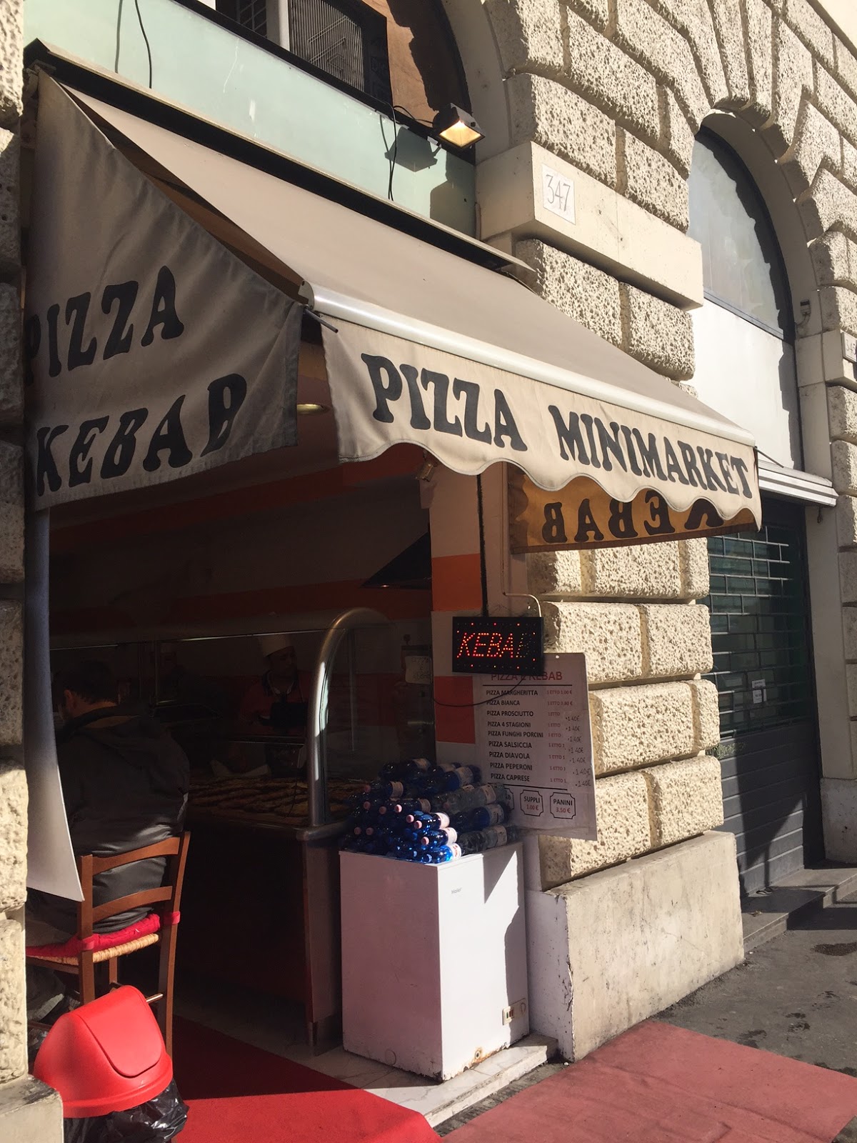 Only three 2-seaters inside. Dan had a kabob wrap, I had a slice of spicy salami pizza. Both were excellent. With a bottle of water for each, grand total for lunch was €9. Score.