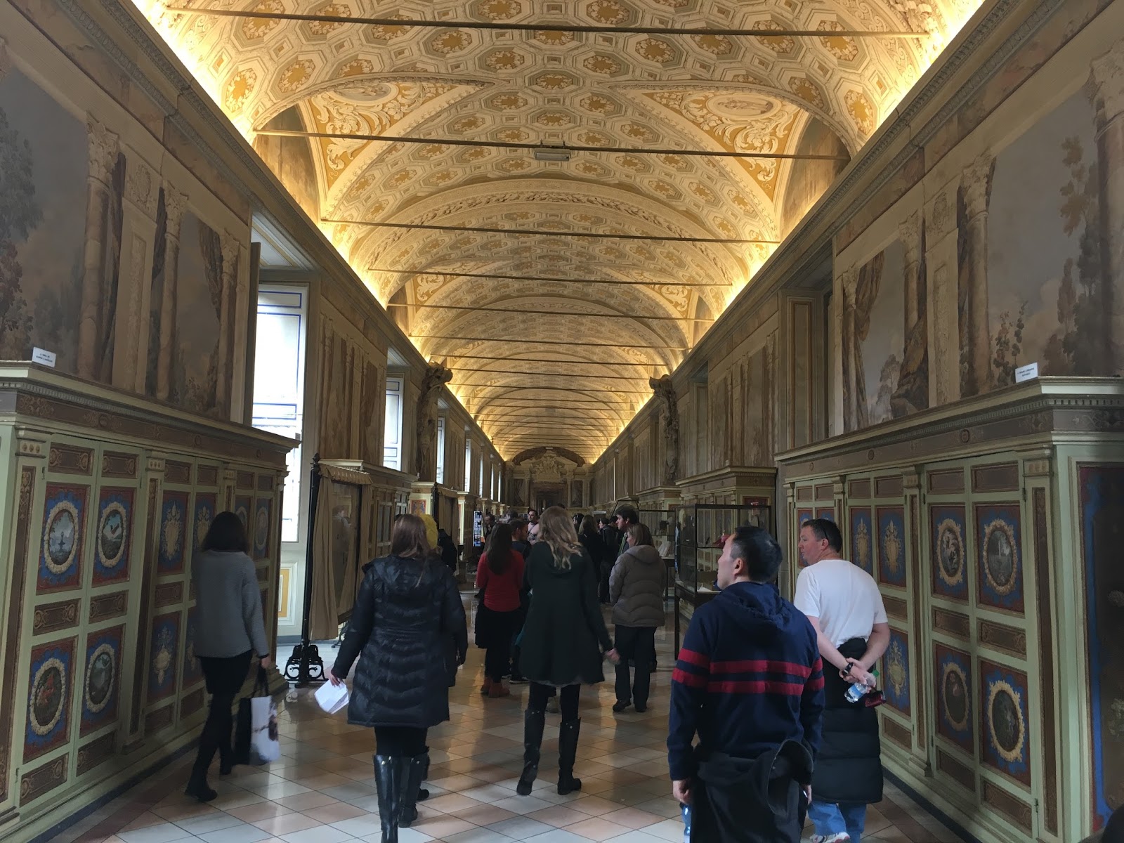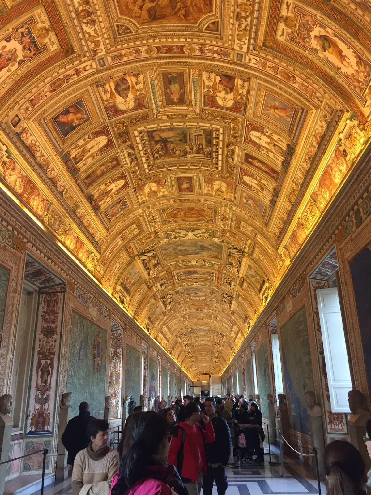 We had a 1pm appointment to be taken to the Vatican Museum, which also contains the Sistine Chapel. We were not really prepared for what we were about to experience. This place is huge, rivaling the Louvre in size. We decided early on the focus was the Sistine Chapel and we’d see what else we could fit in depending on time and energy. Just off the main entrance there was a “short itinerary” sign for the Chapel, indicating a shortcut. Made for us. However, that was when we got the first real sense of size. All things being relative, shortcuts in this place still took you across quite a bit of real estate.