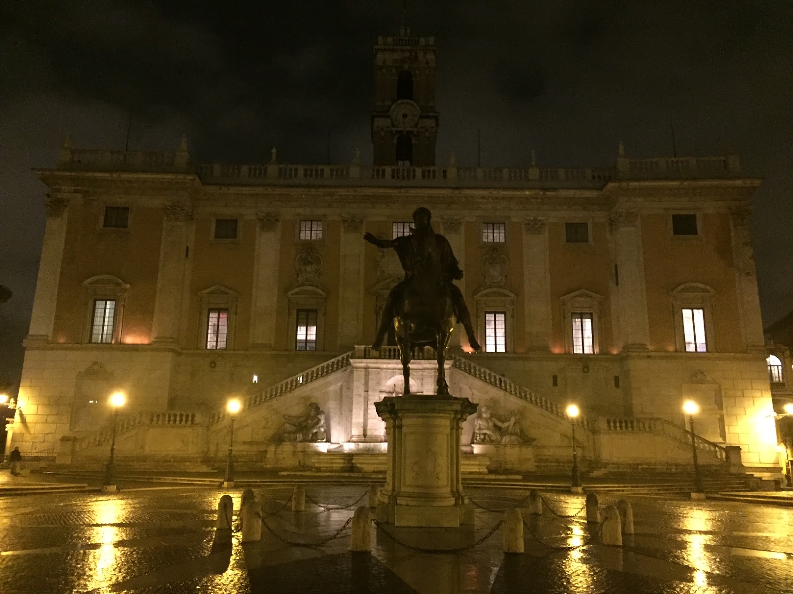 The replica of Marcus Aurelius on a horse – still sitting on the pedestal by Michelangelo.