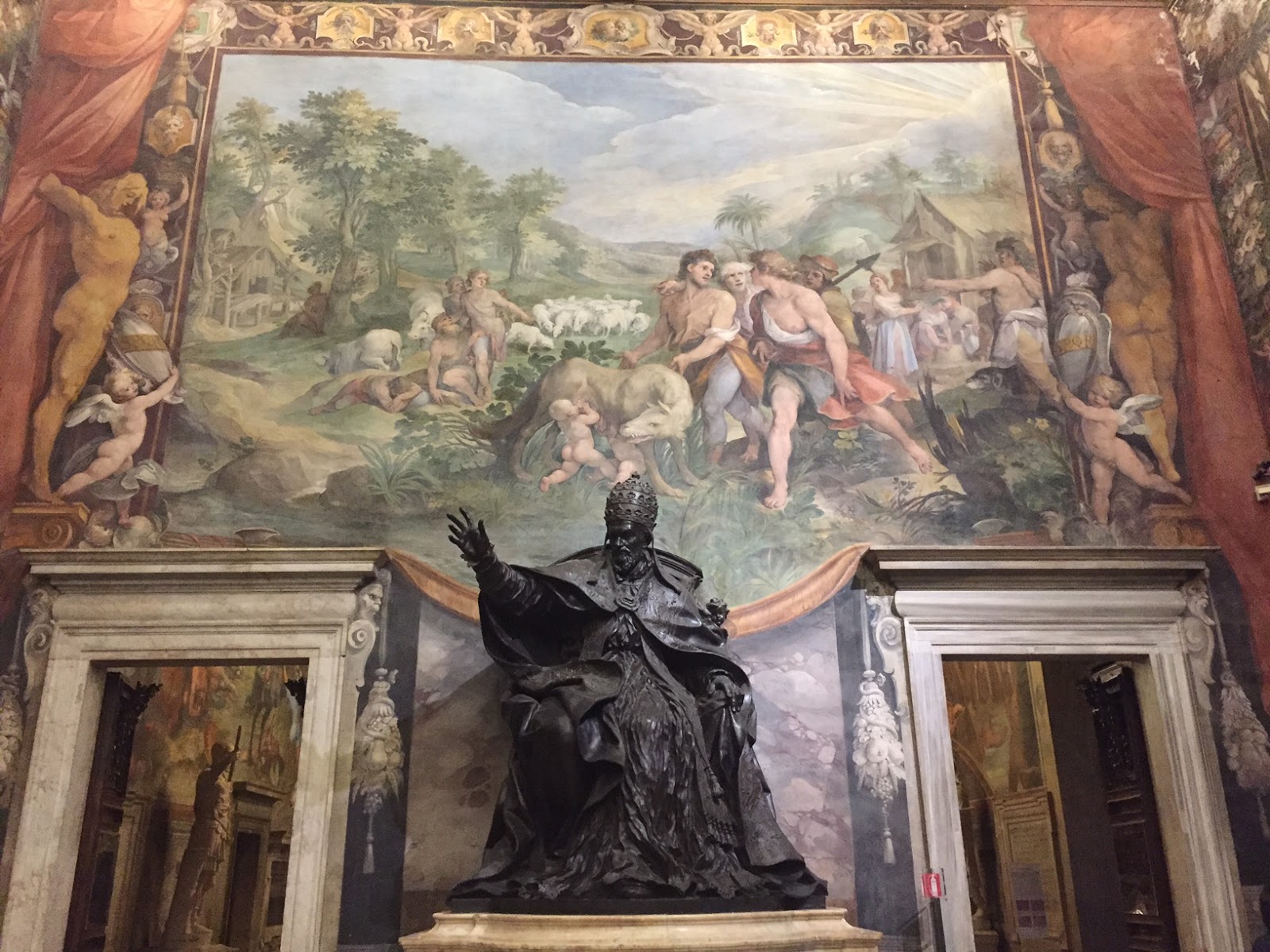 This was Dan’s favorite room. A pope on each end (holy cow do the Romans love their popes) and six paintings circling the room, each telling a significant story in Roman history. He really liked the stories in the paintings.