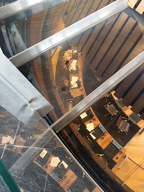 The Assembly itself has only been in existence since 1999 and met at the Pierhead prior to this being built. Prior to 1999, the Welsh had no mechanism for making local decisions outside of the UK governing system. Below, you can see some of the Assembly meeting from the 3rd floor. It’s open to the public, and you can go listen at any time.
