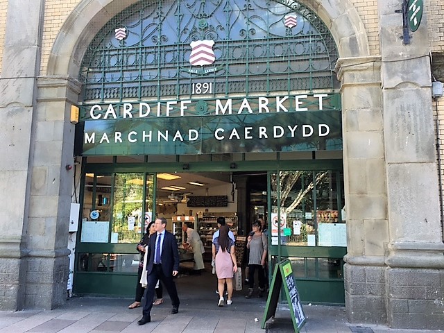 We went by the Cardiff Museum which was focused on history of the city, but it had closed at 4 and it was now 4:30. We went into the Cardiff Market which was right next door, but many of the stalls there were also in the process of closing. Just like we experienced yesterday, this city shuts down early.