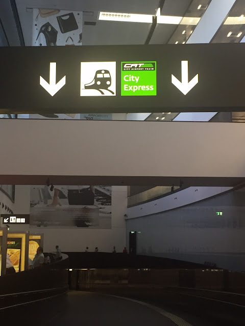 This was the “breadcrumb” Dan had sent me earlier. The sign in the airport pointing you to the train that is a direct shot from the airport to the city center, 16 minutes. And it just so happens to stop at the station that is directly across the street from our hotel. Dan met me at the train station and walked with me back to our room. It’s good to be here.