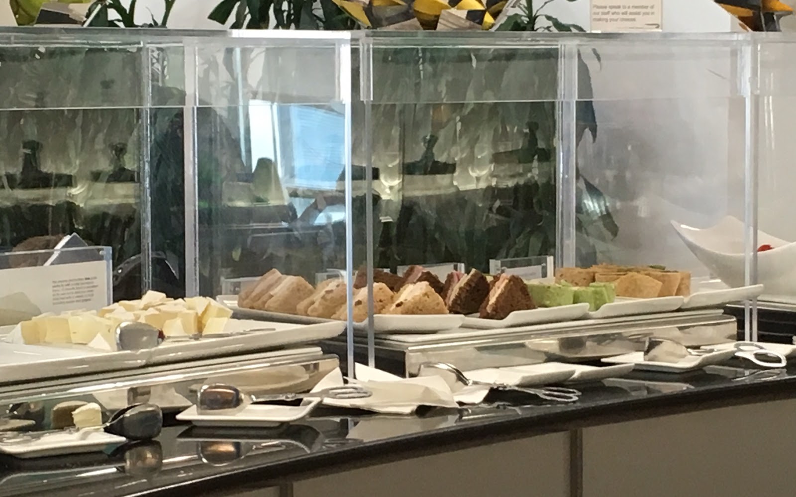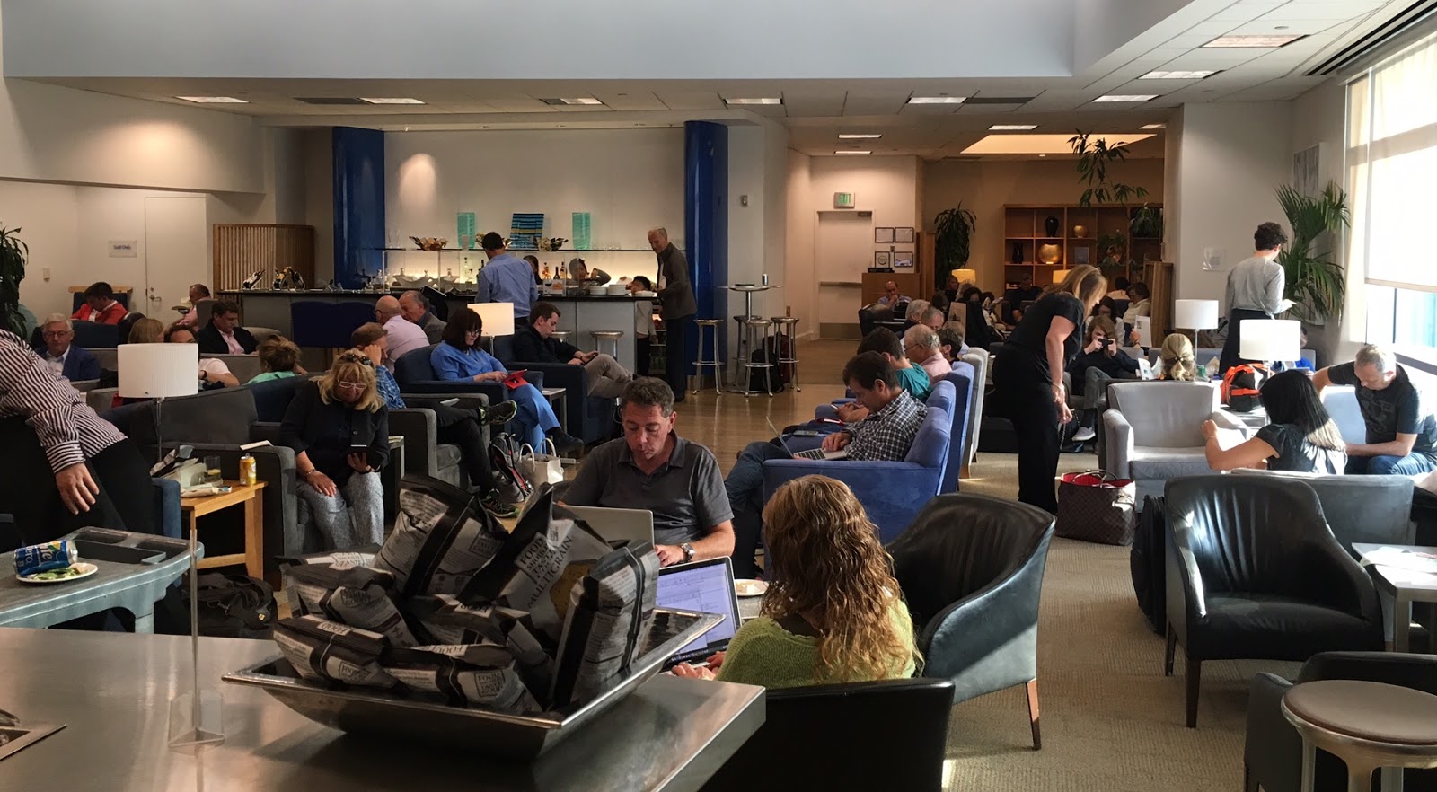 The food was finger sandwiches, with snacks and drinks out of view on the wall to the right. I just nibbled a little since I knew I would get dinner on the plane.