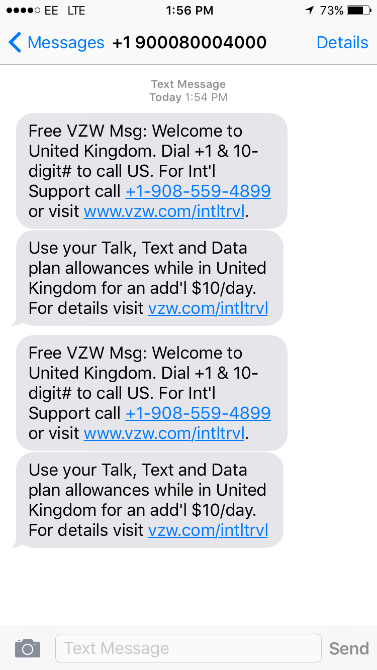 This is one of my favorite things about landing and turning on my phone: getting the text from whatever country I’m in confirming that my cell service kicked in.