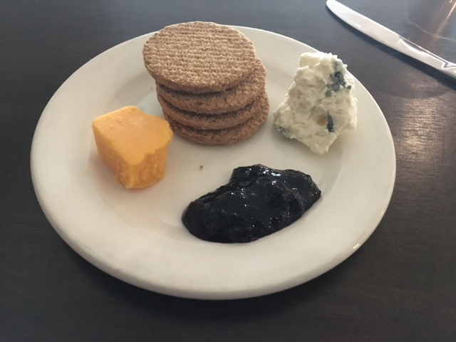 Some decent cheese and cookies for dessert, with a little jam. They had this other thing for dessert that sounded good on paper but was awful. It was a sugary fried thing – it was so bad I don’t even remember – it was like biting into oil soaked dry sponge, and not in a good way. The photo below is the food line on the right and the dessert table on the left.