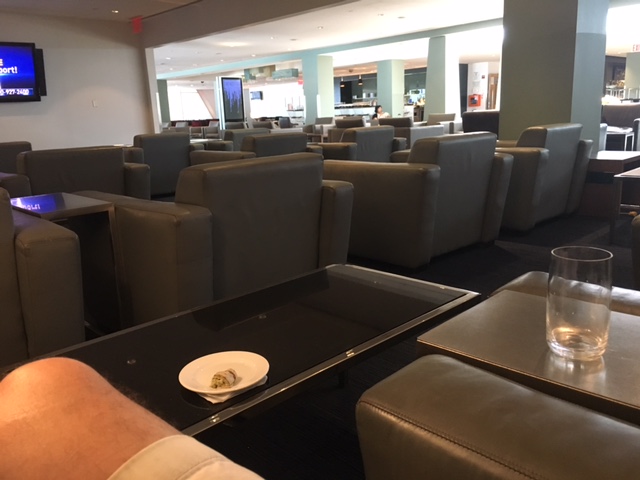 Alcohol bar as well as just water, snacks, etc. There’s also more lounge area behind me and to my right but you get the idea. It’s a pretty nice lounge, despite all the reviews complaining about how outdated it is. If you don’t have to sit at a gate and buy expensive and unhealthy airport food, I’d say you have it pretty good. And I do.